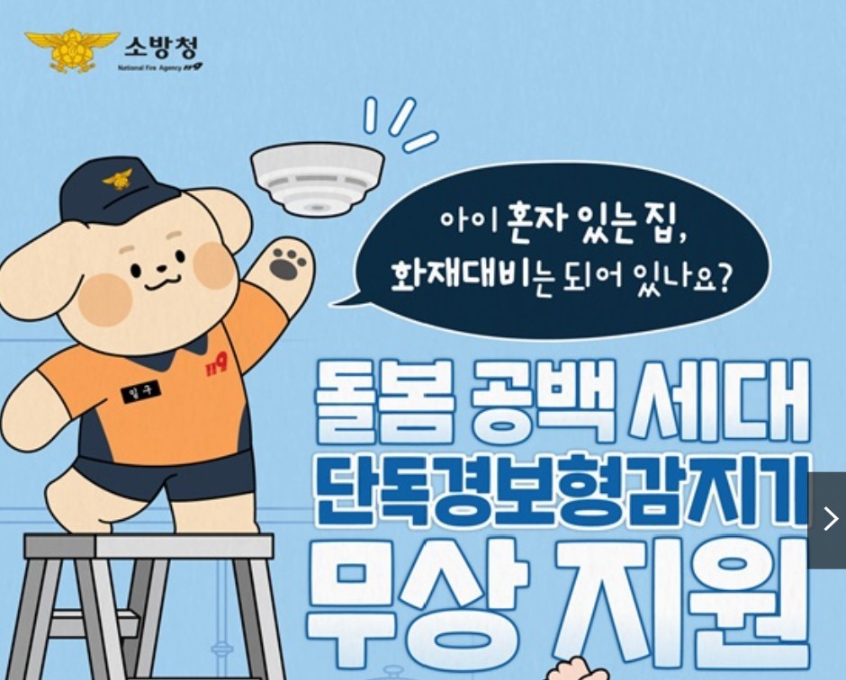 이를 예방하고 안전한 주거환경을 만들기 위해 소방청에서는 돌봄 공백 세대를 대상으로 ‘단독경보형감지기’를 무상으로 지원하고 있습니다.