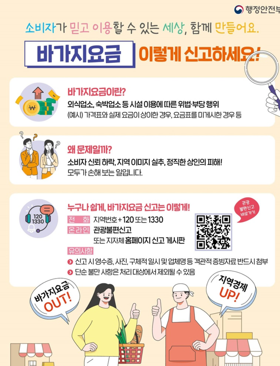 행정안전부에서는 “소비자가 믿고 이용할 수 있는 세상”을 만들기 위해 바가지요금 근절 캠페인을 진행 중입니다.