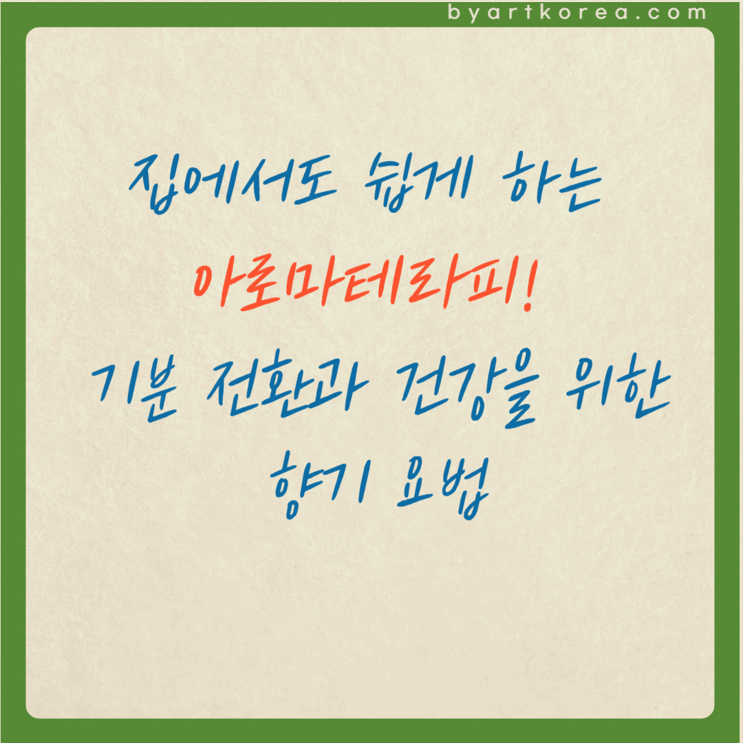 아로마테라피는 일상 속에서 쉽게 활용할 수 있는 건강 관리법입니다. 적절한 향을 선택해 기분을 전환하고 스트레스를 줄이며, 집중력과 면역력을 높이는 데 도움을 받을 수 있습니다.